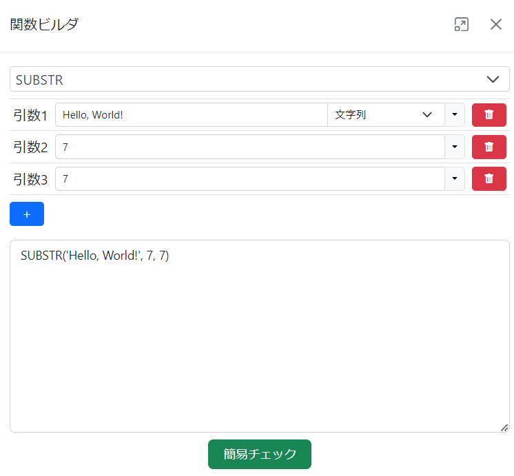 文字列の結合なので、順番に注意しながら引数を入力します。