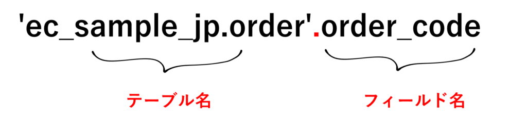 という表記になります。(例:’ec_sample_jp.order’.order_code)