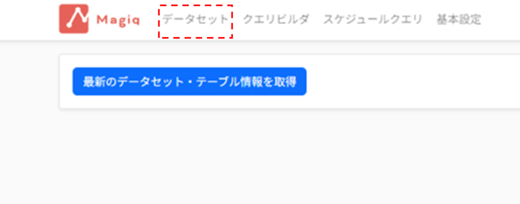 Magiqトップページにある「最新のデータセット・テーブル情報を取得」ボタンを押すことで、今現在の最新のBigQueryのデータセット・テーブル情報を取得しMagiq上に呼び出すことができます。